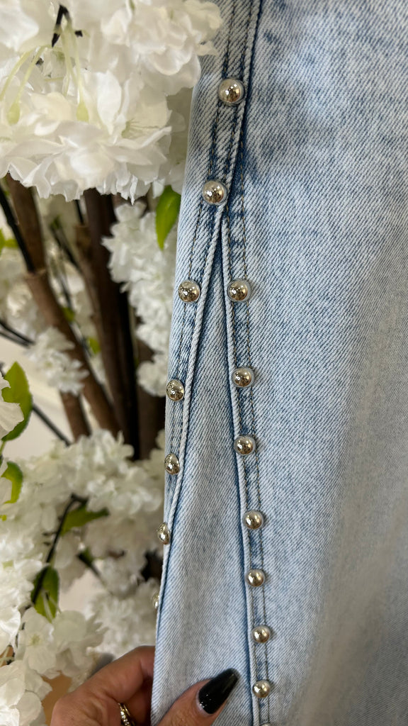 A modelo tem o tamanho S vestido.