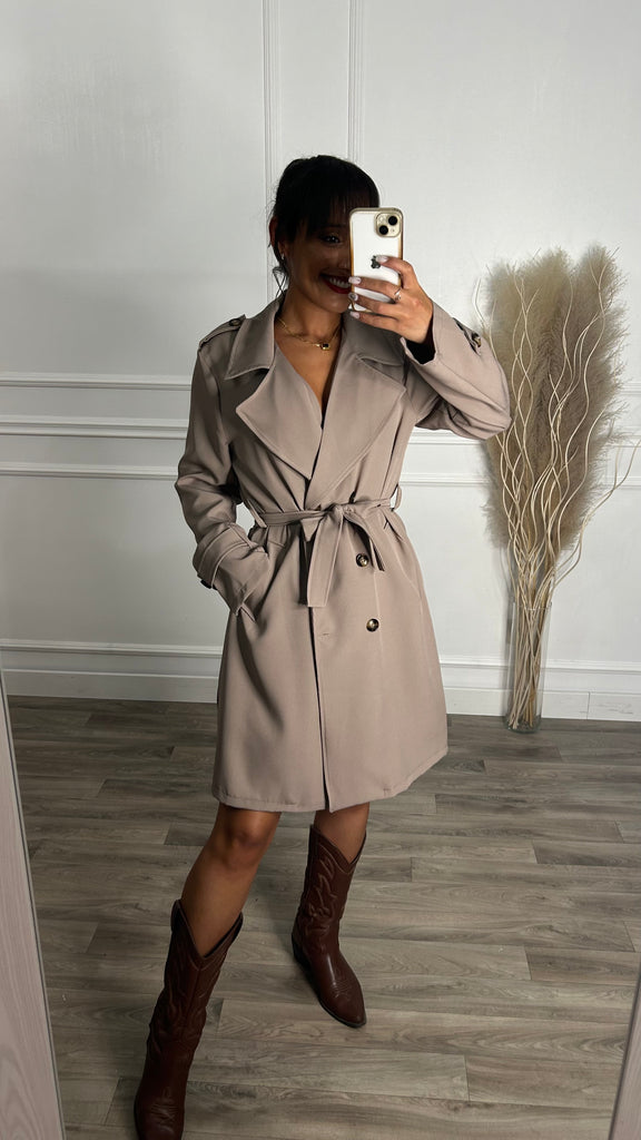 Tecido com 5% de elastano.- Até à cintura.- Aperta com botões.- Bolsos laterais e cinto.- TU S M L