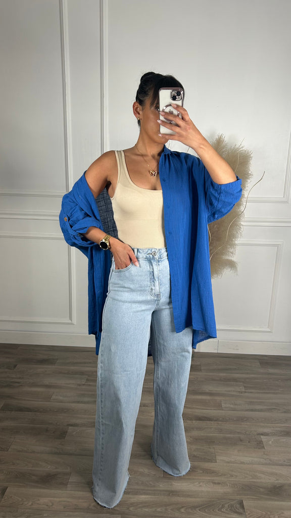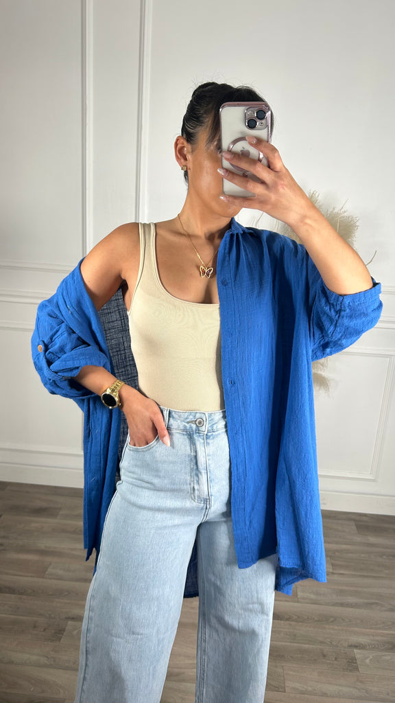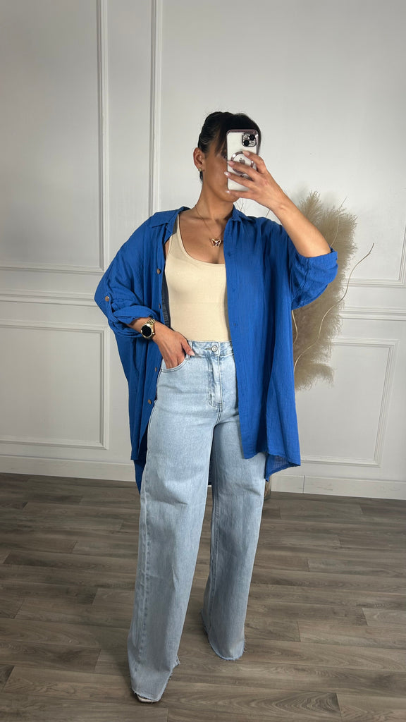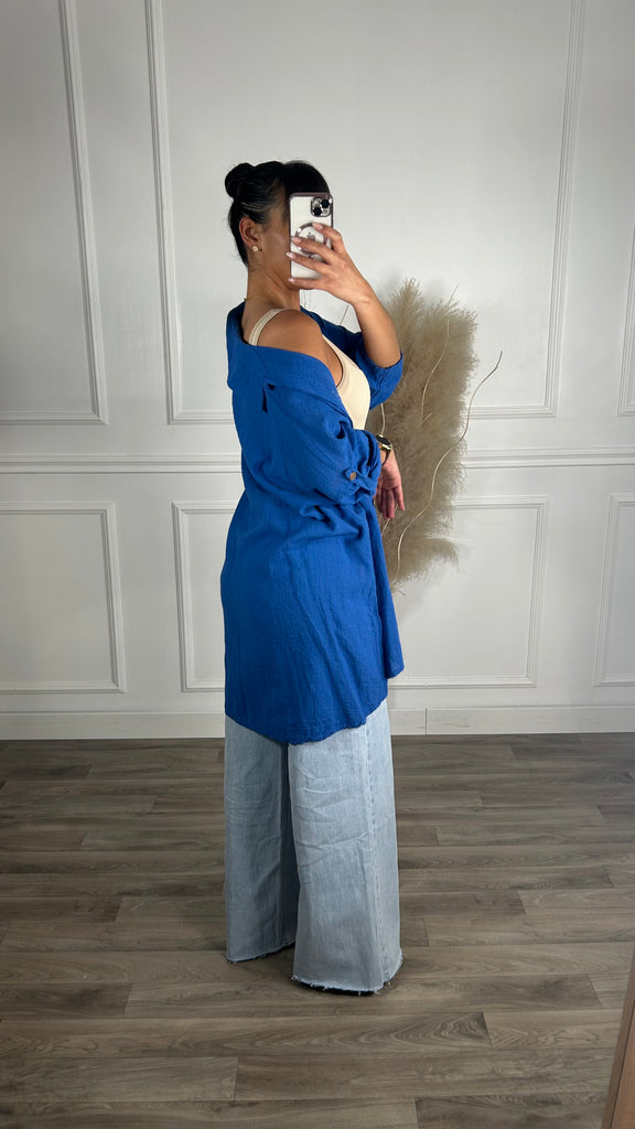 Com botões, pode ser usado como sobre camisa ou como vestido.