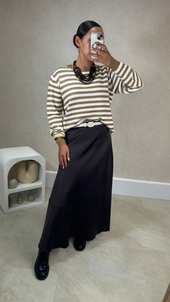 Saia de tecido acetinado. Tecido grosso, invernoso. T.U. S M L XL