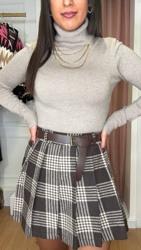 Elástico na parte de trás da saia adaptável à silhueta.